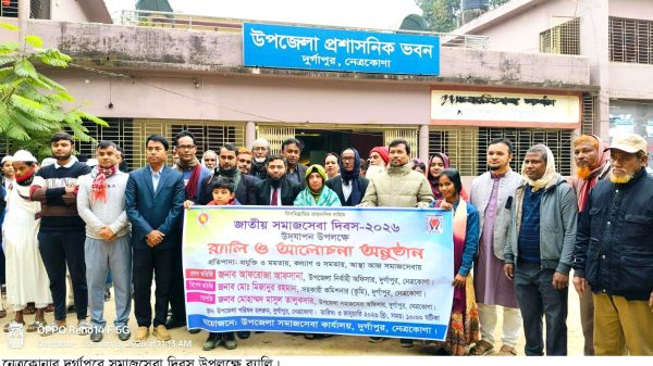 দুর্গাপুর (নেত্রকোনা) প্রতিনিধি : ‘প্রযুক্তি ও মমতায়, কল্যাণ ও সমতায়’’ এই প্রতিপাদ্যে নেত্রকোনার দুর্গাপুরে জাতীয় সমাজসেবা দিবস পালিত হয়েছে। শনিবার (৩ জানুয়ারি) সকালে উপজেলা সমাজসেবা কার্যালয়ের আয়োজনে দিবসটি উপলক্ষে বর্ণাঢ্য