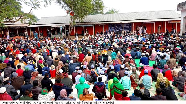 দুর্গাপুর (নেত্রকোনা) প্রতিনিধি : বাংলাদেশের সাবেক তিনবারের সফল প্রধানমন্ত্রী বেগম খালেদা জিয়ার মৃত্যুতে নেত্রকোনার দুর্গাপুরে ২নং দুর্গাপুর ইউনিয়ন বিএনপি ও তার সহযোগী সংগঠনের আয়োজনে বেগম খালেদা জিয়ার রুহের মাগফিরাত কামনা