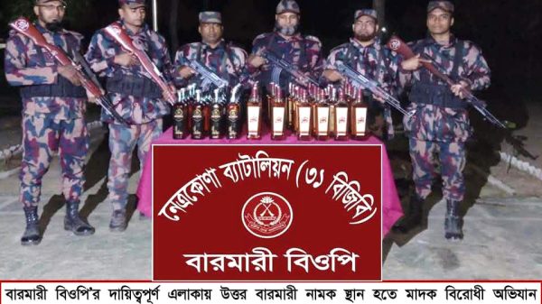 দুর্গাপুর (নেত্রকোনা) প্রতিনিধি : নেত্রকোনার সীমান্তবর্তী উপজেলা দুর্গাপুর হতে মালিকবিহীন ৬০ বোতল বিদেশী মদ জব্দ করেছে বর্ডার গার্ড বাংলাদেশ (বিজিবি)। এসব মাদক নেত্রকোনা মাদকদ্রব্য নিয়ন্ত্রণ অধিদপ্তরের কাছে হস্তান্তর করা হবে।