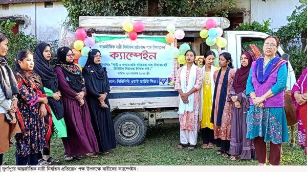 দুর্গাপুর (নেত্রকোনা) প্রতিনিধি : বিশ্বব্যাপী প্রতিবছর ২৫ নভেম্বর হতে ১০ ডিসেম্বর পর্যন্ত আন্তর্জাতিক নারী নির্যাতন প্রতিরোধ প্রচারাভিযান শুরু হয়। এ উপলক্ষে নেত্রকোনার দুর্গাপুরেও নানা আয়োজনে এ ক্যাম্পেইন পালিত হয়েছে। বৃহস্পতিবার