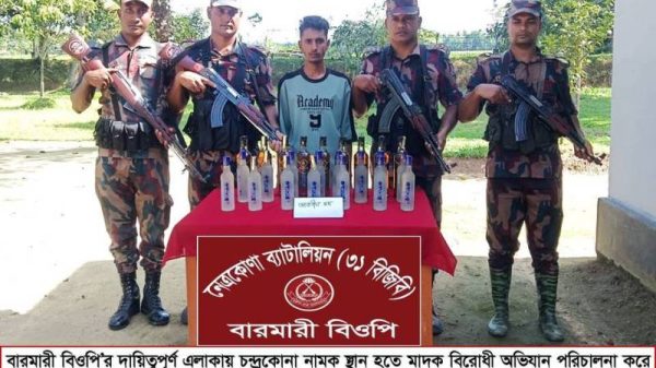 দিগন্ত ডেক্স : নেত্রকোনার সীমান্তবর্তী উপজেলা দুর্গাপুর হতে ২৪ বোতল বিভিন্ন ব্র্যান্ডের বিদেশী মদের বোতলসহ একজনকে আটক করেছে বর্ডার বার্ড বাংলাদেশ (বিজিবি)। জব্দকৃত মাদকের মধ্যে রয়েছে, ১৫ বোতল আইস ভদকা