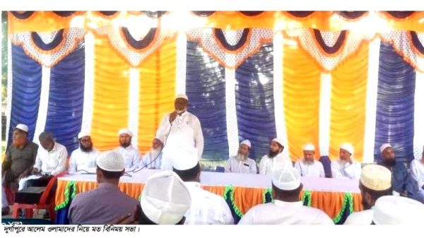 দুর্গাপুর (নেত্রকোনা) প্রতিনিধি : নেত্রকোনার দুর্গাপুর পৌরশহরের আলেম সমাজের উদ্দ্যেগে, পৌর এলাকার সর্বস্তরের আলেম-ওলামাদের নিয়ে এক মতবিনিময় সভা অনুষ্ঠিত হয়েছে। রবিবার (২৬ অক্টোবর) বিকেলে জামিউল উলুম কাচারী মাদরাসা চত্ত্বরে এ