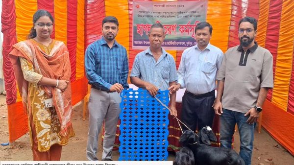 দুর্গাপুর (নেত্রকোনা) প্রতিনিধি : সমতল ভূমিতে বসবাসরত অনগ্রসর ক্ষুদ্র নৃ-গোষ্ঠির আর্থ-সামাজিক ও জীবন মান উন্নয়নের জন্য সমন্বিত প্রাণিসম্পদ উন্নয়ন প্রকল্পের আওতায় উন্নত জাতের ছাগল ও ছাগলের গৃহ নির্মান সামগ্রী বিতরণ