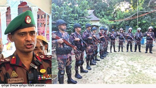 দুর্গাপুর (নেত্রকোনা) প্রতিনিধি : আসন্ন শারদীয় দূর্গাপূজা উপলক্ষে নিরাপত্তা ব্যবস্থা জোরদার ও সার্বিক পরিস্থিতি সুষ্ঠ রাখতে, দুর্গাপুর পৌরশহরে অস্থায়ী ক্যাম্প স্থাপন করেছে নেত্রকোনা ব্যাটালিয়ান (৩১ বিজিবি)। এ উপলক্ষে বুধবার (২৪