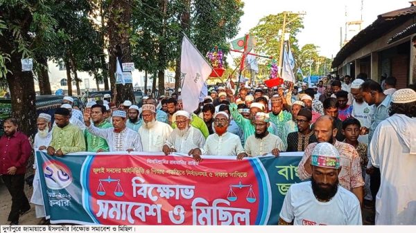 দুর্গাপুর (নেত্রকোনা) প্রতিনিধি : বাংলাদেশ জামায়াতে ইসলামী দুর্গাপুর উপজেলা শাখার আয়োজনে জুলাই সনদের আইনী বৈধতা ও পিআর পদ্ধতিতে জাতীয় নির্বাচনসহ ৫ দফা দাবিতে এক বিক্ষাভ সমাবেশ ও মিছিল অনুষ্ঠিত হয়েছে।