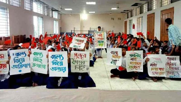 দিগন্ত ডেক্স : একটি শিশু আর একটি শিশুর জন্ম দিতে পারেনা। বাল্যবিবাহ একটি মারাত্মক সামাজিক অপরাধ যার বিরুদ্ধে সকলকে সোচ্চার হতে হবে, শিশুদের শারীরিক ও মানসিক স্বাস্থ্যের জন্য মারাত্মক হুমকিস্বরূপ