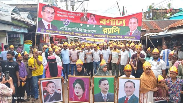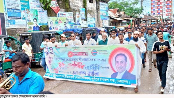 দুর্গাপুর (নেত্রকোনা) প্রতিনিধি : নেত্রকোনার দুর্গাপুরে নানা আয়োজনে বাংলাদেশ জাতীয়তাবাদী স্বেচ্ছাসেবক দলের প্রতিষ্ঠাবার্ষিকী পালিত হয়েছে। উপজেলা স্বেচ্ছাসেবকদলের আয়োজনে বুধবার (২০ আগস্ট) দুপুরে বর্নাঢ্য র্যালি ও আলোচনা সভার মধ্যদিয়ে এ প্রতিষ্ঠাবার্ষিকী