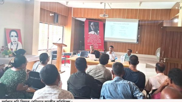 দুর্গাপুর (নেত্রকোনা) প্রতিনিধি : নেত্রকোনার দুর্গাপুরে মানবাধিকার ও পরিবেশ সুরক্ষা প্রকল্প (চঈঈ) এর আয়োজনে এক ভূমি বিষয়ক সেমিনার অনুষ্ঠিত হয়েছে। মঙ্গলবার (২২ জুলাই) বেলা ১১ টায় স্থানীয় কমরেড মনি সিংহ