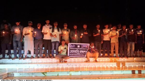 দুর্গাপুর (নেত্রকোনা) প্রতিনিধি : ঢাকার উত্তরার মাইলস্টোন স্কুল অ্যান্ড কলেজ এলাকায় যুদ্ধবিমান বিধ্বস্ত হয়ে শিক্ষার্থীসহ নিহতদের স্মরণে নেত্রকোনার দুর্গাপুরে মোমবাতি প্রজ্বলন কর্মসূচি পালন করেছে স্বেচ্ছাসেবী সংগঠন এসবি রক্তদান সমাজ কল্যাণ