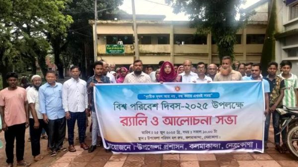 কলমাকান্দা (নেত্রকোনা) প্রতিনিধি : “প্লাষ্টিক দূষণ আর নয়, বন্ধ করার এখনই সময়”—এ প্রতিপাদ্যে নেত্রকোনার কলমাকান্দায় পালিত হয়েছে বিশ্ব পরিবেশ দিবস। বুধবার সকালে উপজেলায় মানবাধিকার ও পরিবেশ সুরক্ষা প্রকল্পের (PCC) সহযোগিতা র্যালি