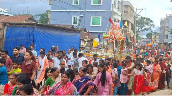 দুর্গাপুর (নেত্রকোনা) প্রতিনিধি : নেত্রকোনার দুর্গাপুরে সনাতন ধর্মাবলম্বীদের অন্যতম ধর্মীয় উৎসব শ্রী শ্রী জগন্নাথ দেবের রথযাত্রা অনুষ্ঠিত হয়েছে। উপজেলা পূজা উদযাপন পরিষদ ও শ্রী শ্রী দশভূজাবাড়ি মন্দির পরিচালনা কমিটির আয়োজনে